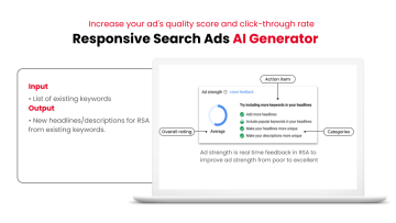 Responsive Search Ads AI Generator - can help to fill gaps in search campaigns set up by creating new headlines/descriptions for Responsive Search Ads from existing keywords.