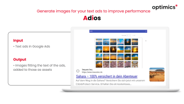 Adios - can streamline your image asset (extension) management. Effortlessly upload your existing images in bulk and link them directly to relevant ad groups. Don't have images? No problem! Adios harnesses the power of AI to generate personalized, high-quality images tailored to your specific search ad group context, boosting your campaign's visual appeal and performance.