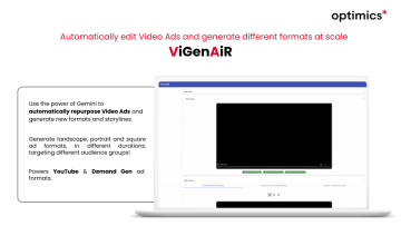 ViGenAir - harnesses the power of multimodal Generative AI models on Google Cloud Platform (GCP) to automatically transform long-form Video Ads into shorter variants, in multiple ad formats, targeting different audiences. It is your AI-powered creative partner, generating video, image and text assets to power Demand Gen and YouTube video campaigns.